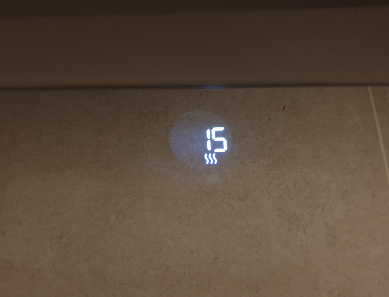 바닥에 빔을 쏴서 남은 시간과, 세척 중이라는 현재의 상태를 보여줍니다.