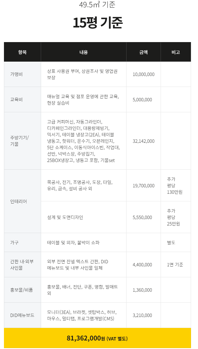 | 가맹비 & 교육비 | 660 만원 |